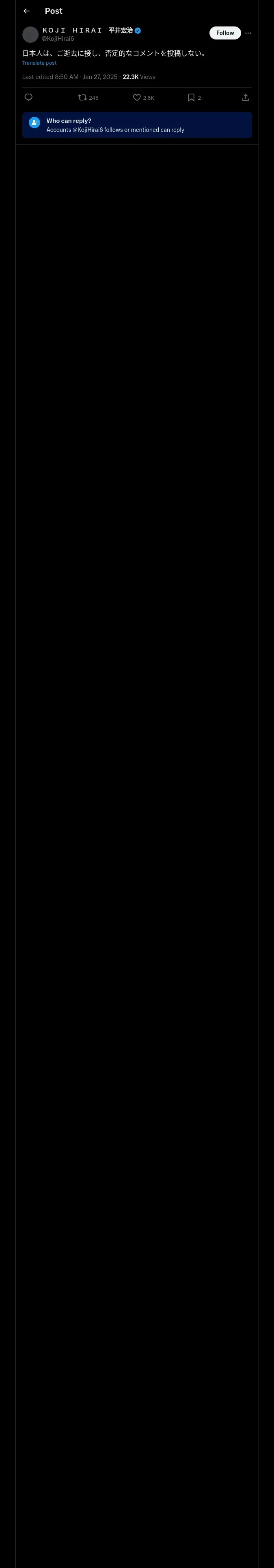 取得元URL: https://x.com:443/KojiHirai6/status/1883663761111953624