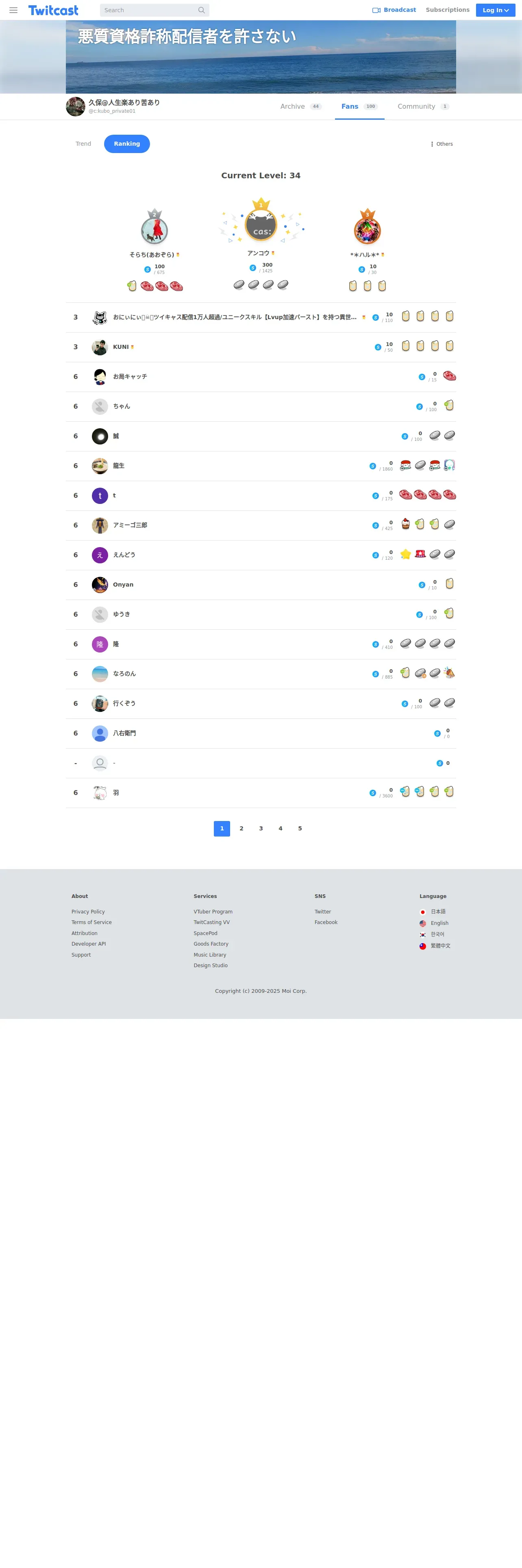 取得元URL: https://twitcasting.tv:443/c:kubo_private01/backers/