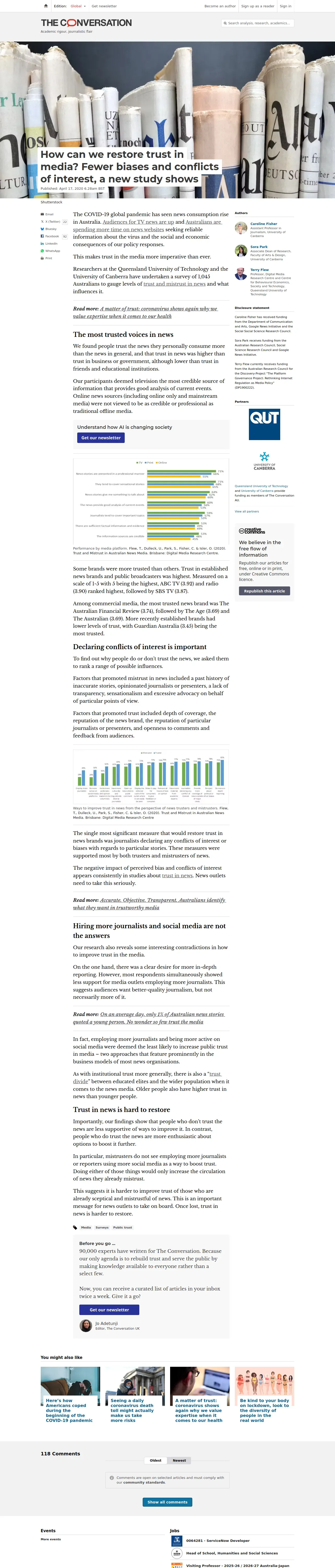 https://theconversation.com:443/how-can-we-restore-trust-in-media-fewer-biases-and-conflicts-of-interest-a-new-study-shows-135680