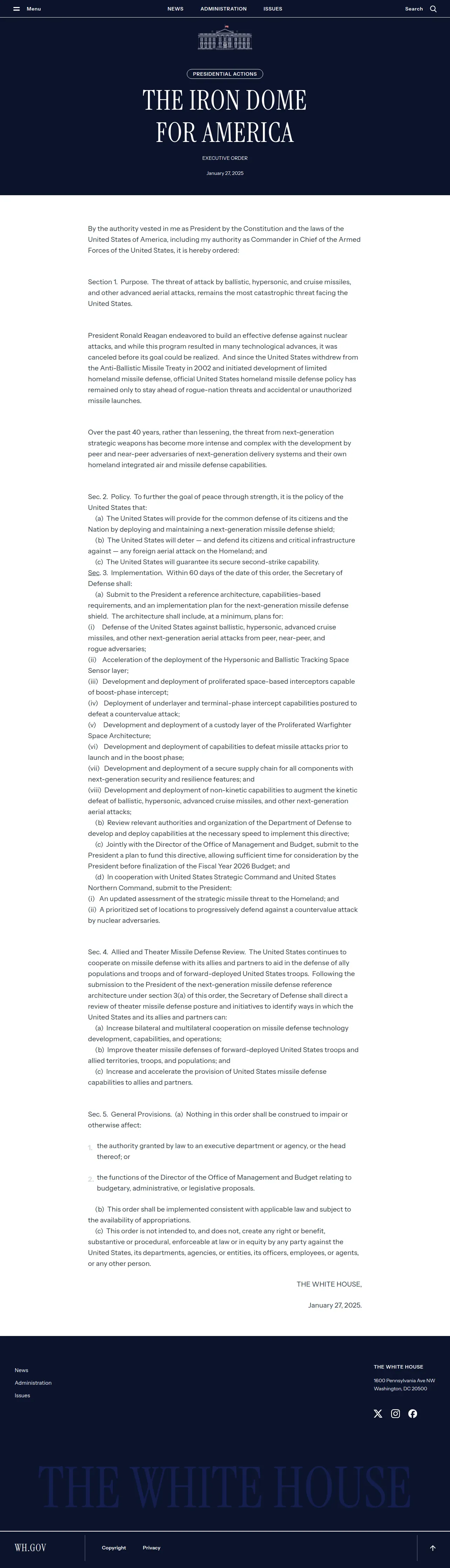 https://www.whitehouse.gov:443/presidential-actions/2025/01/the-iron-dome-for-america/