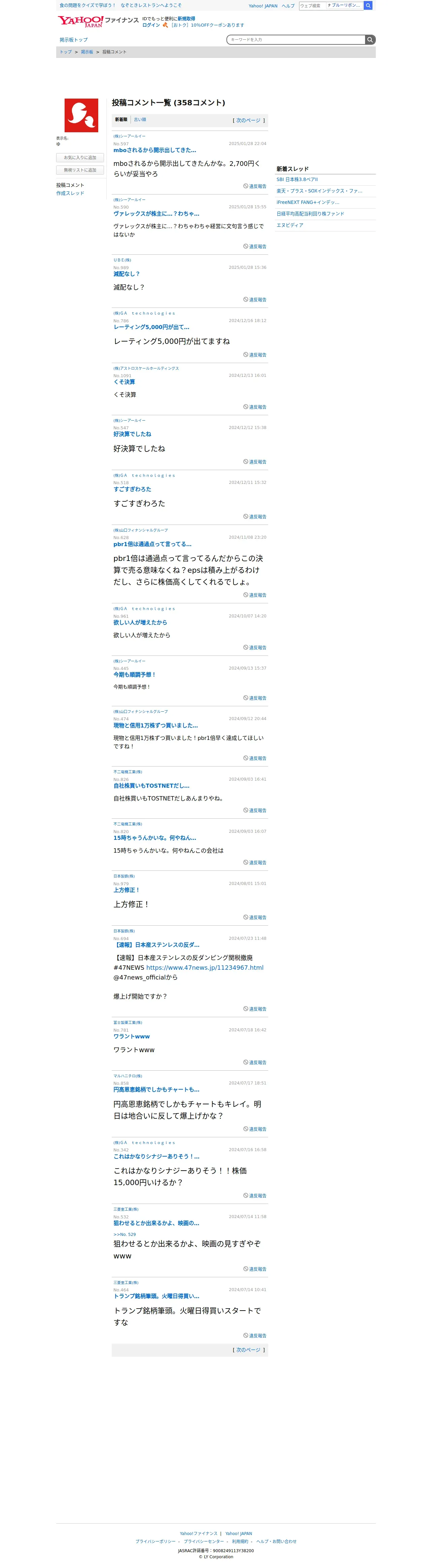 https://finance.yahoo.co.jp:443/cm/personal/history/comment?user=04cbd78f630568f0ef5b6b7b0b539416c1d30689f054bb1f23a71726117815c9