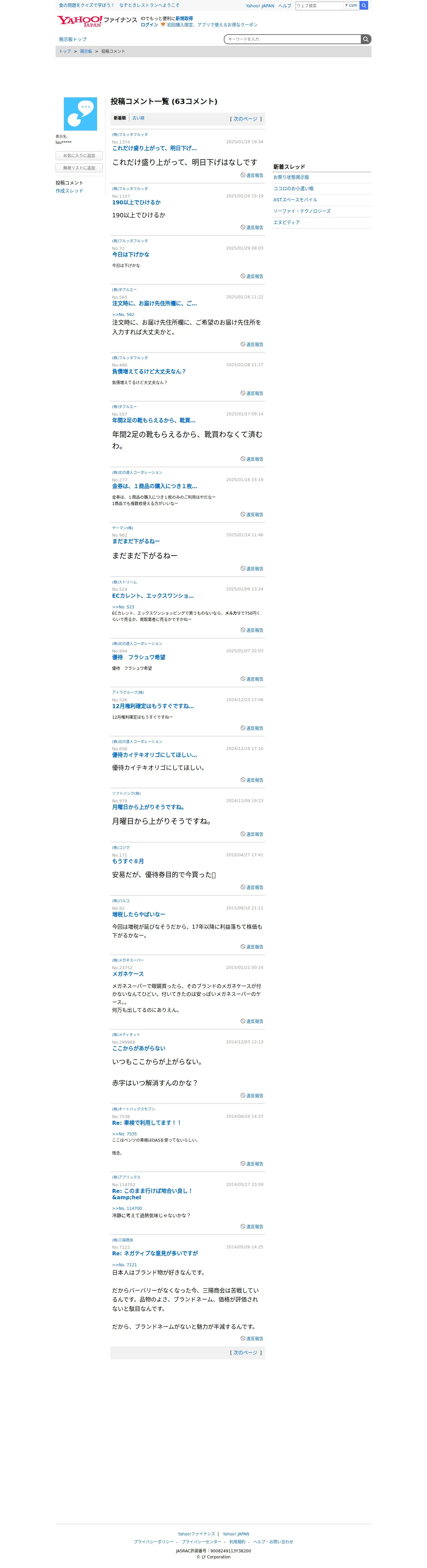 取得元URL: https://finance.yahoo.co.jp:443/cm/personal/history/comment?user=fb461ea92a680d8f882c9a60a8a3fc168ff30ea0e9ac3865359fd21ff077b4e8