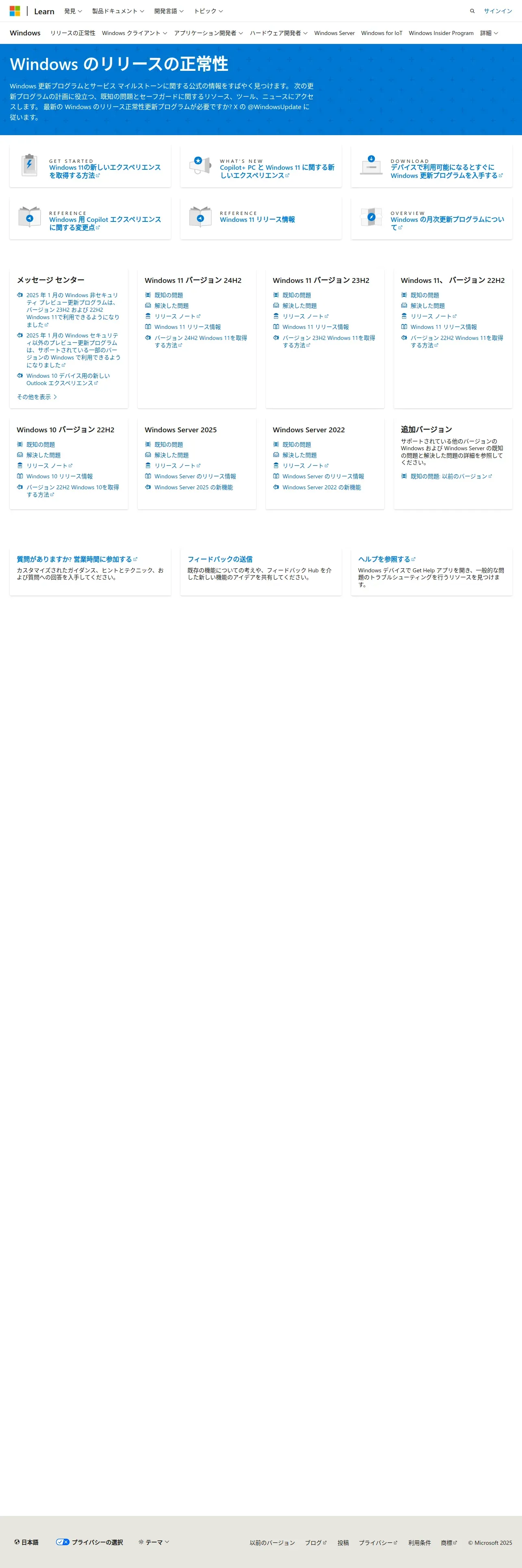 https://learn.microsoft.com:443/ja-jp/windows/release-health/