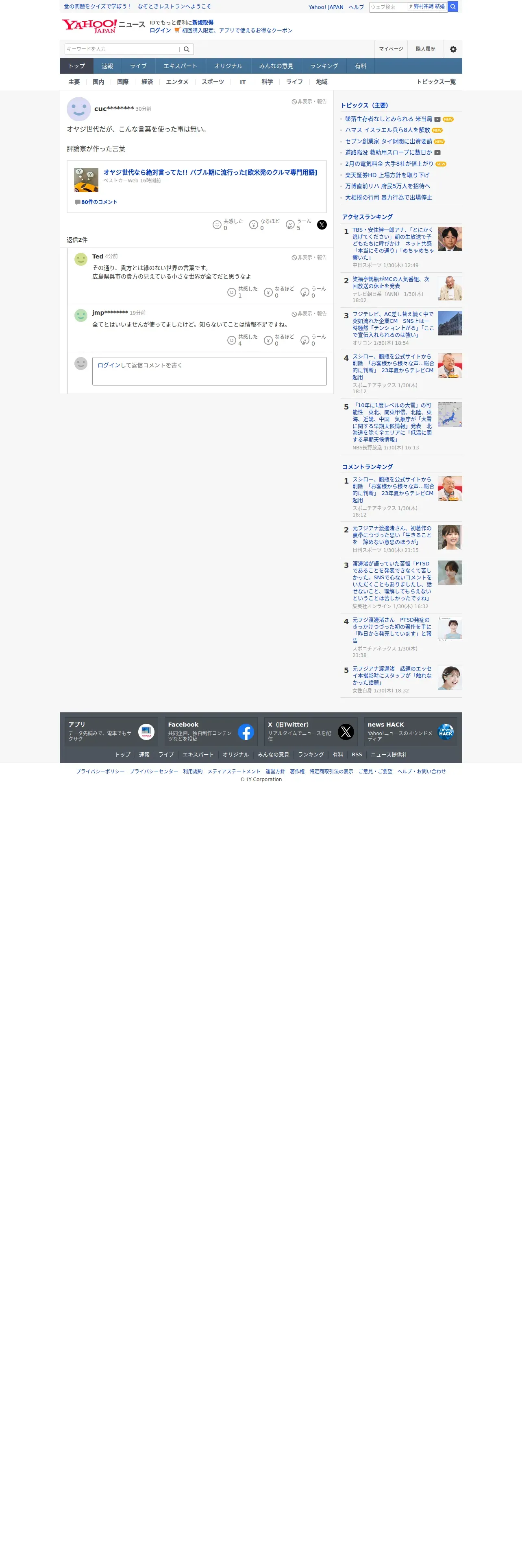 取得元URL: https://news.yahoo.co.jp:443/profile/news/comments/220f503b-0928-4d50-a95c-ab2b490ee83e