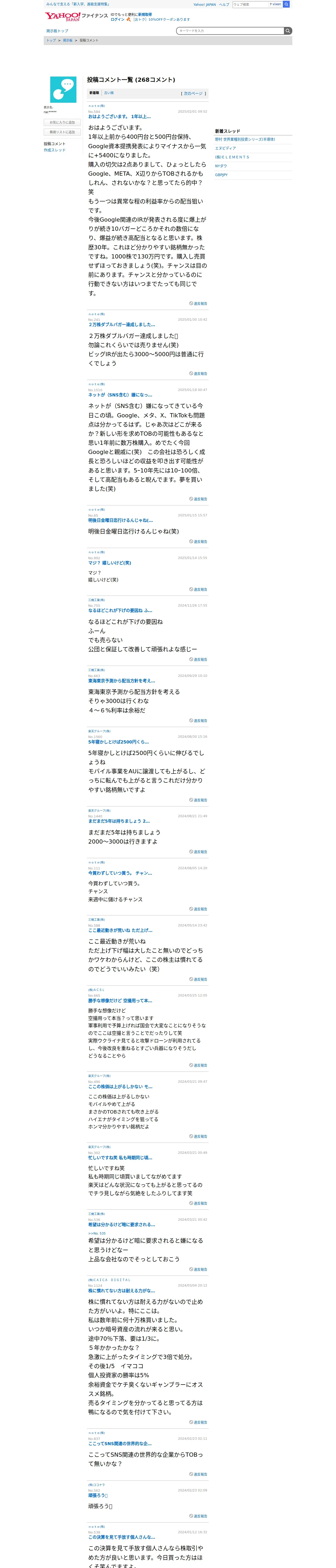 https://finance.yahoo.co.jp:443/cm/personal/history/comment?user=f594e306d94bc02473f5757785102be7d8070513770cd882e114c93732ec7b58
