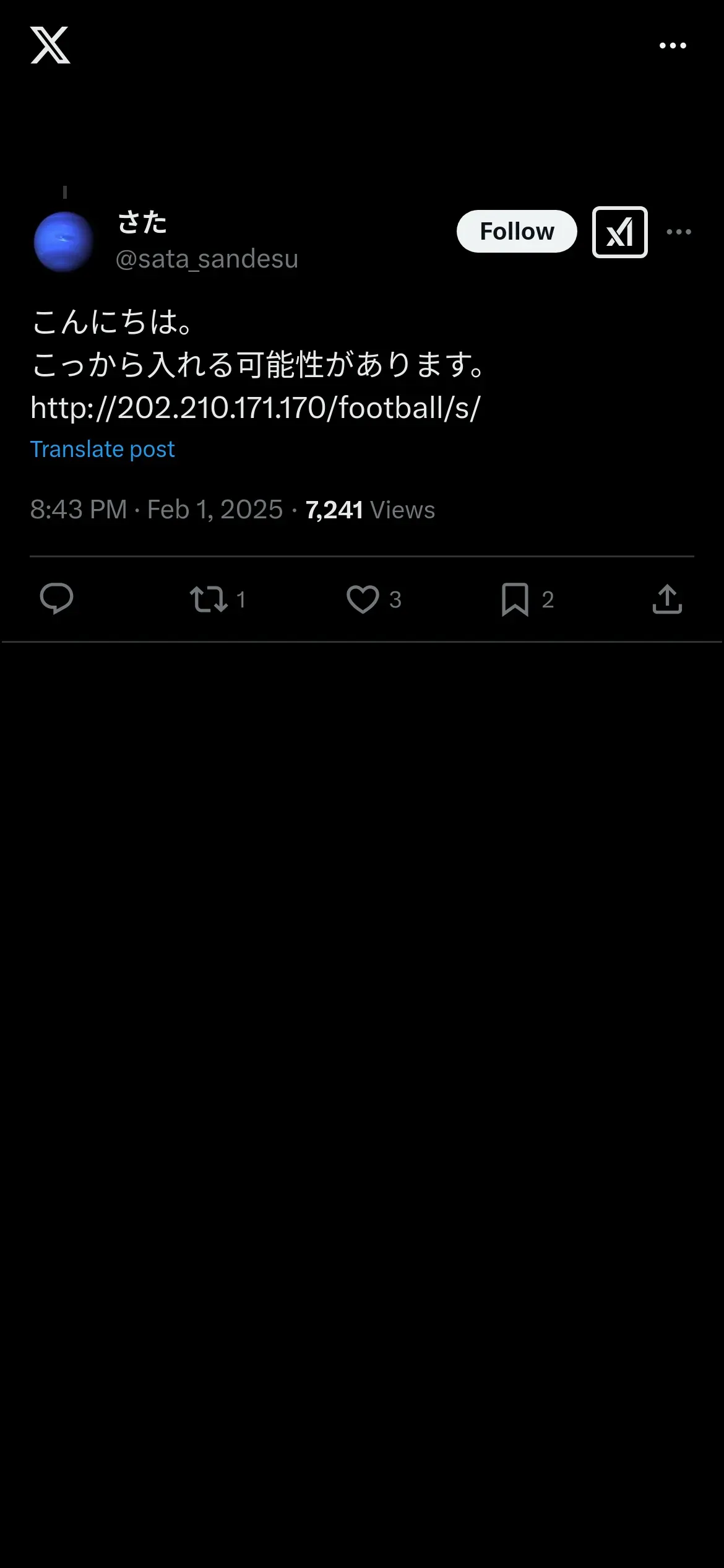 取得元URL: https://x.com:443/sata_sandesu/status/1885655104684277817?s=46