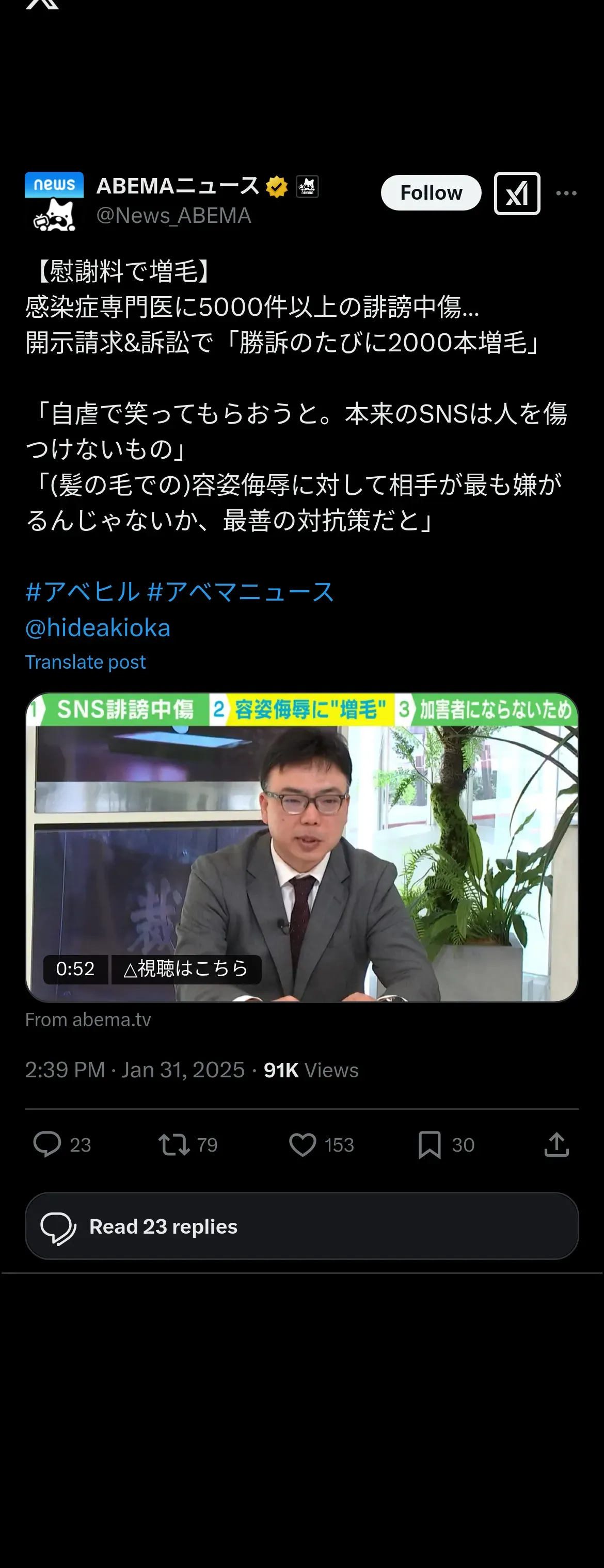 取得元URL: https://x.com:443/News_ABEMA/status/1885201181557088427