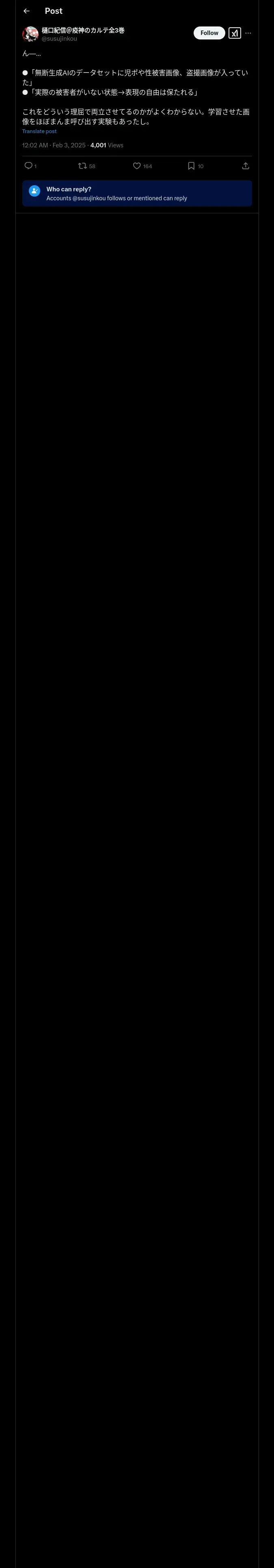 https://x.com:443/susujinkou/status/1886067664235401726