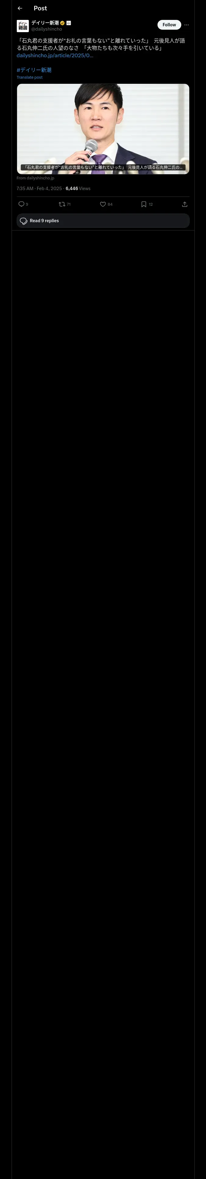 https://x.com:443/dailyshincho/status/1886543999332409472