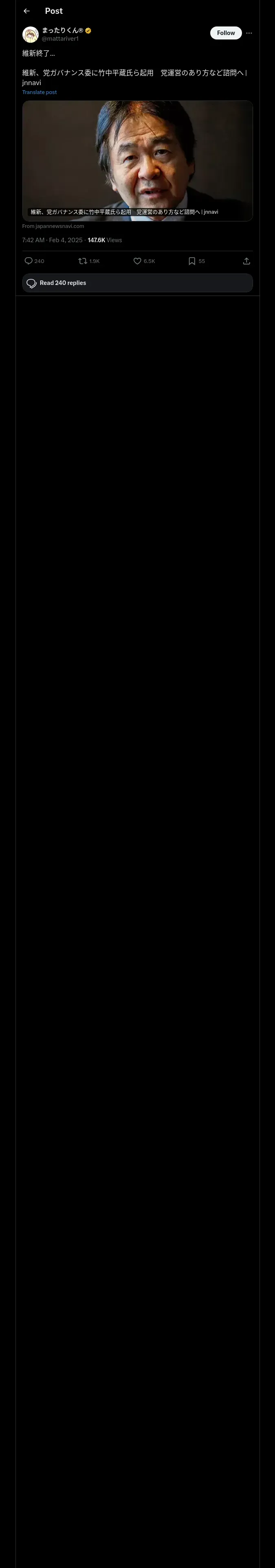 取得元URL: https://x.com:443/mattariver1/status/1886545710876598366