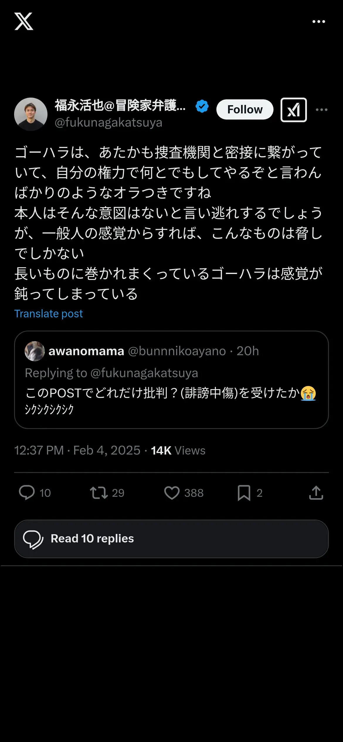 取得元URL: https://x.com:443/fukunagakatsuya/status/1886620144690192832?t=D0B3vU80T5UFg9xpm8wwpg&s=19