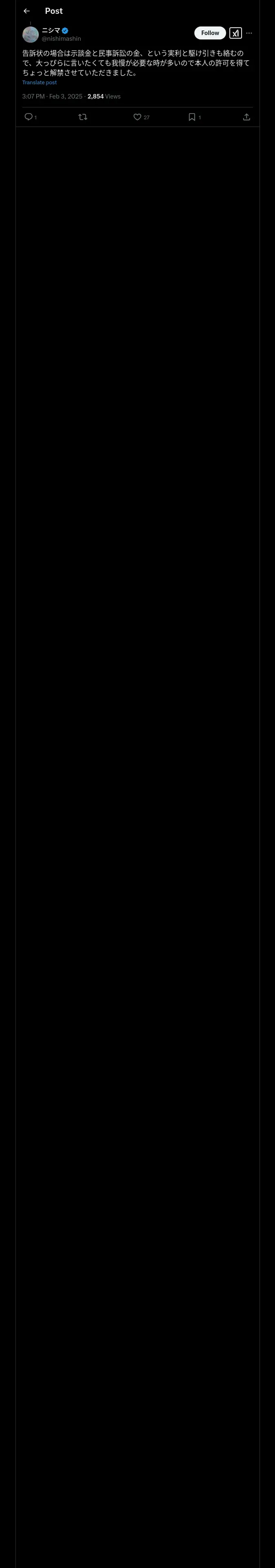取得元URL: https://x.com:443/nishimashin/status/1886295394994495778