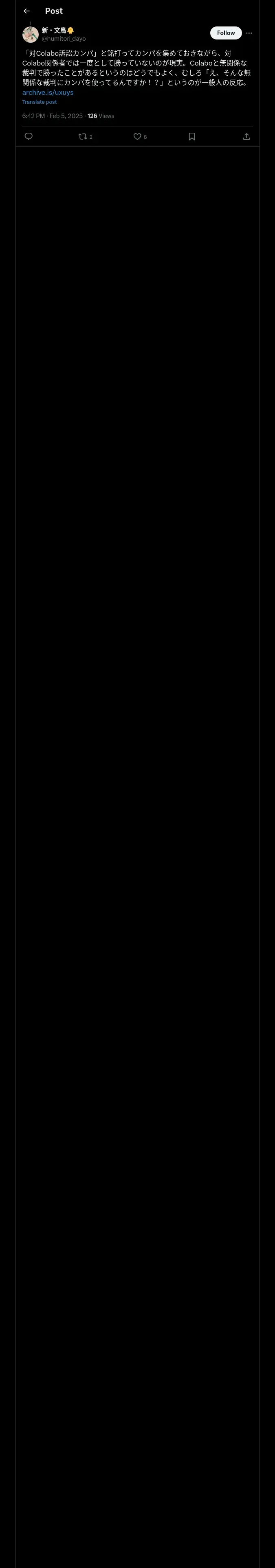 https://x.com:443/humitori_dayo/status/1887074340417814535?t=qKRL-yMMEEIWx4g9jy4JbQ&s=19