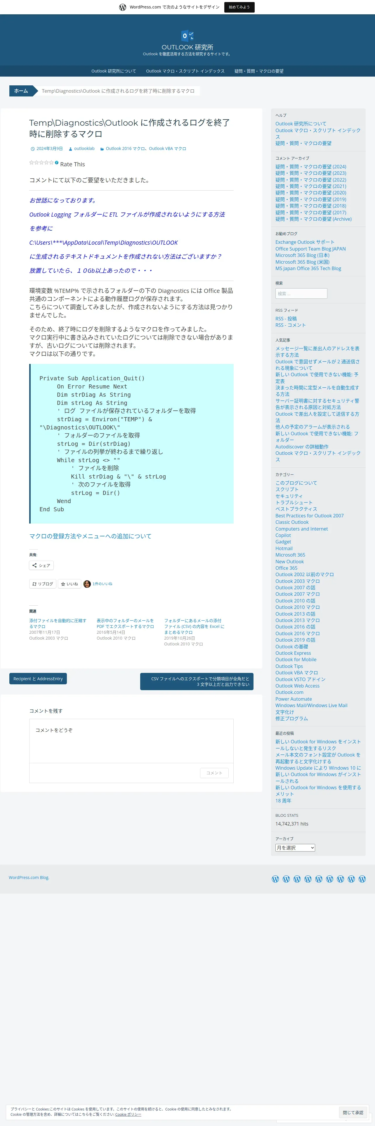 https://outlooklab.wordpress.com:443/2024/03/09/tempdiagnosticsoutlook-%E3%81%AB%E4%BD%9C%E6%88%90%E3%81%95%E3%82%8C%E3%82%8B%E3%83%AD%E3%82%B0%E3%82%92%E7%B5%82%E4%BA%86%E6%99%82%E3%81%AB%E5%89%8A%E9%99%A4%E3%81%99%E3%82%8B%E3%83%9E%E3%82%AF/