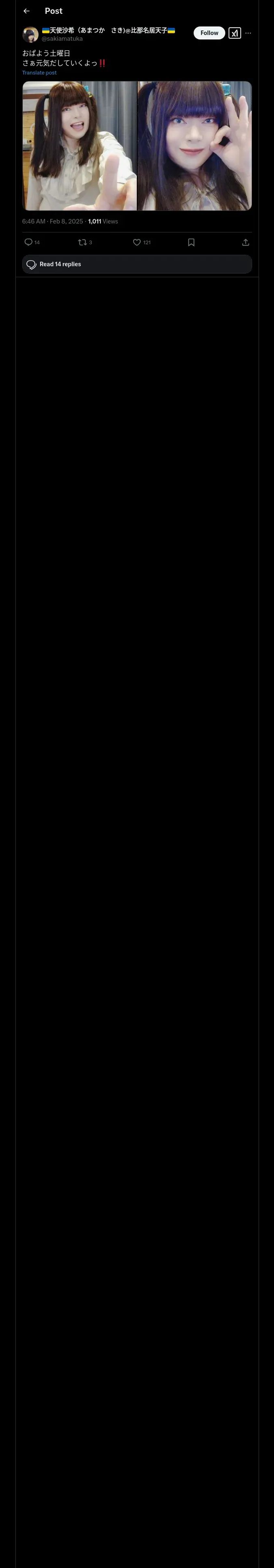 https://x.com:443/sakiamatuka/status/1887981383852990748