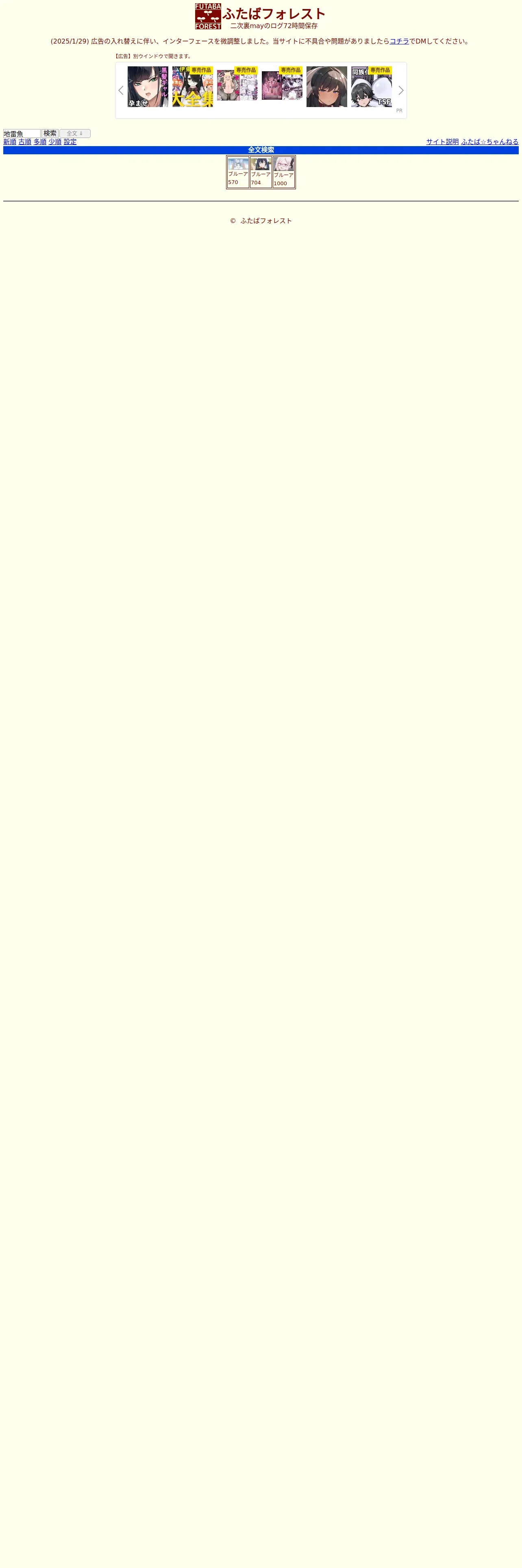 https://futabaforest.net:443/index.htm?sm=2&words=%E5%9C%B0%E9%9B%B7%E9%AD%9A