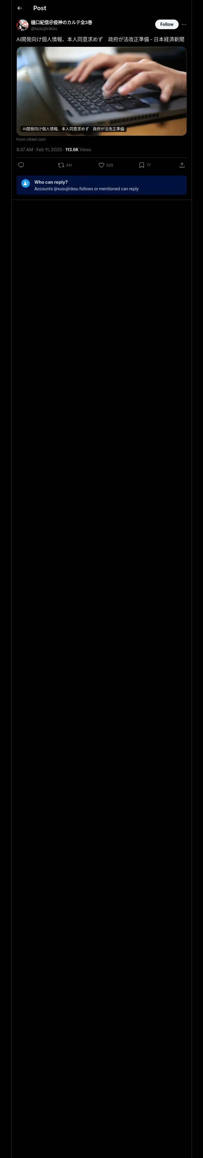 https://x.com:443/susujinkou/status/1889096494814482504