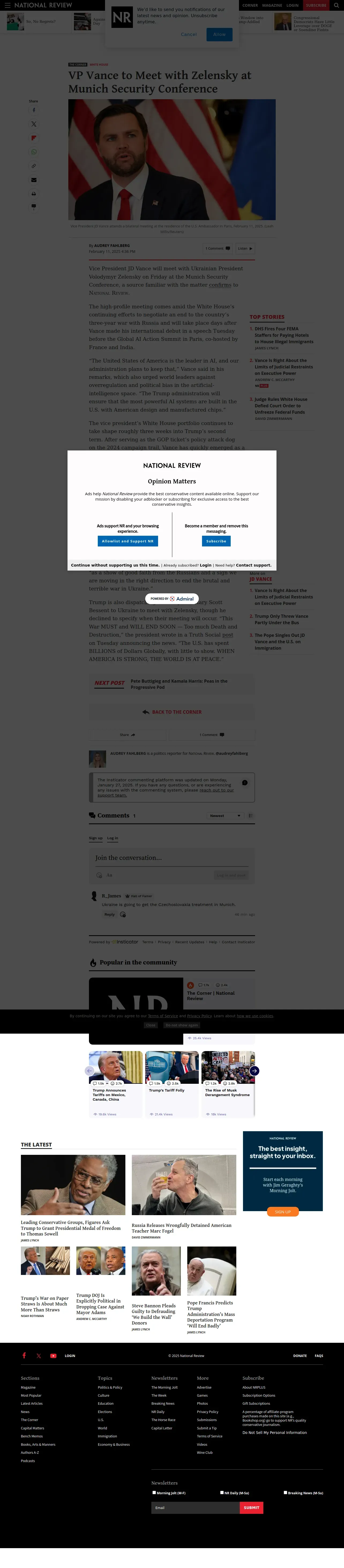 https://www.nationalreview.com:443/corner/vp-vance-to-meet-with-zelensky-at-munich-security-conference/