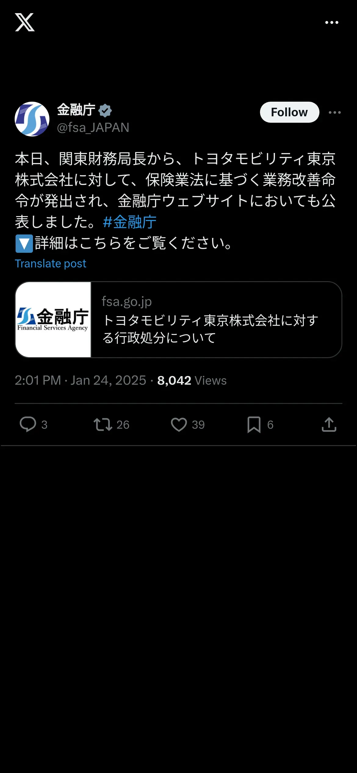 https://x.com:443/fsa_japan/status/1882654973823172966