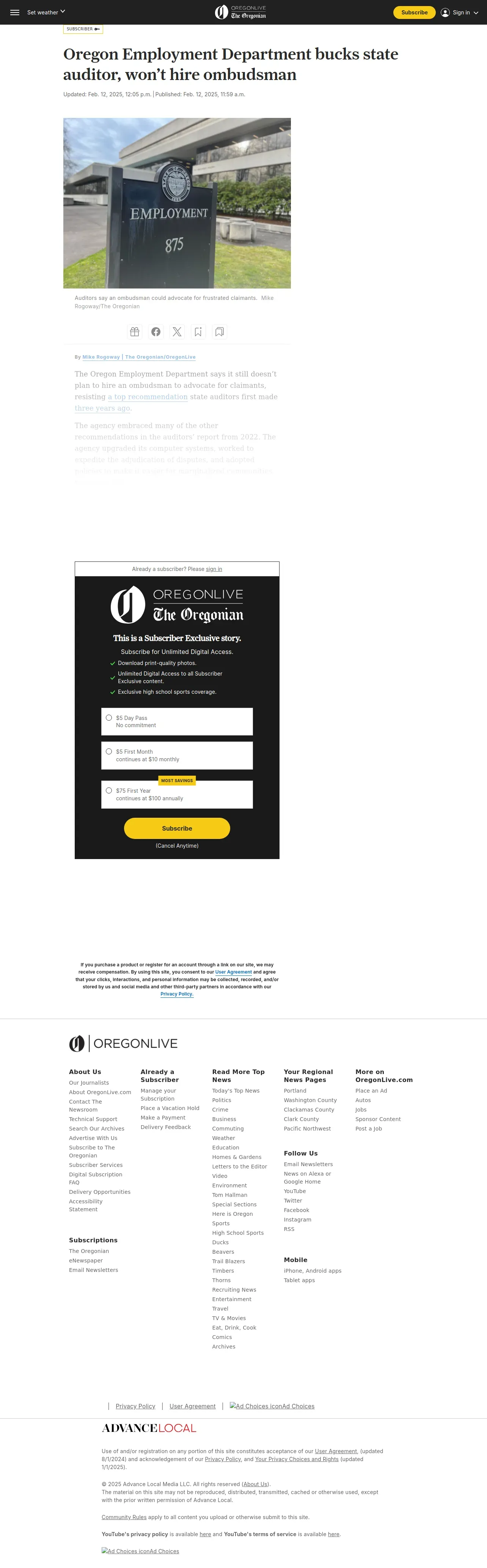 https://www.oregonlive.com:443/business/2025/02/oregon-employment-department-bucks-state-auditor-wont-hire-ombudsman.html