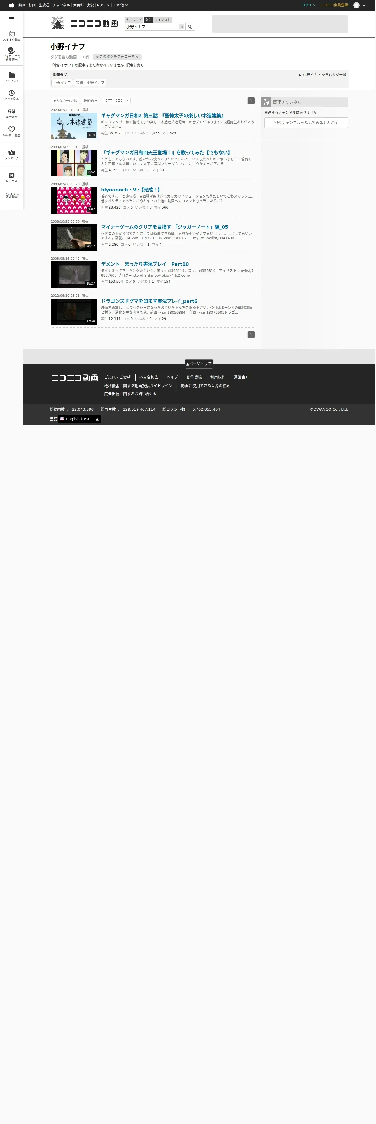 https://www.nicovideo.jp:443/tag/%E5%B0%8F%E9%87%8E%E3%82%A4%E3%83%8A%E3%83%95