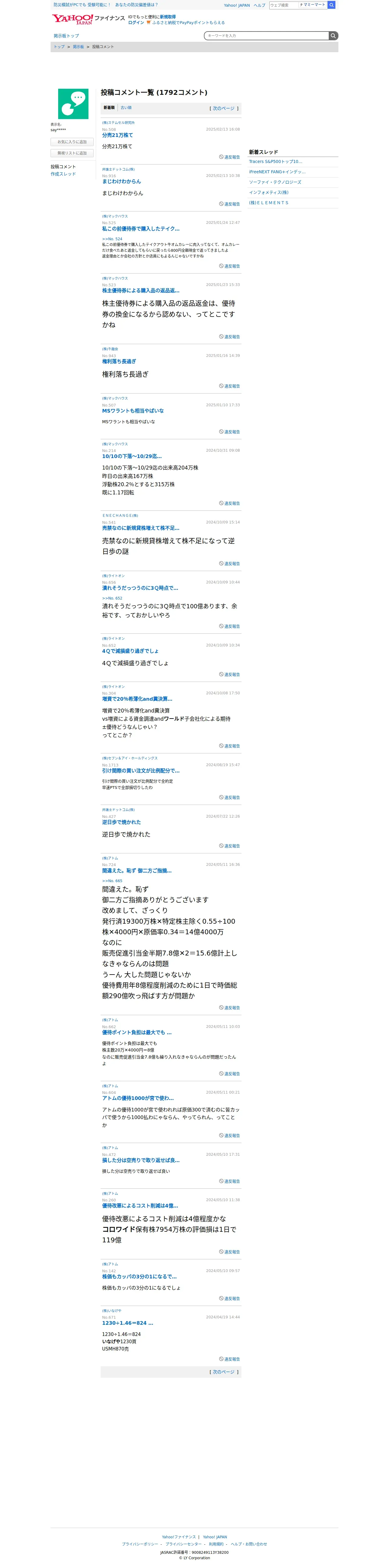 https://finance.yahoo.co.jp:443/cm/personal/history/comment?user=8401631688de46c514749724537ef969f8e7b3053abf4893df6072380e48abea