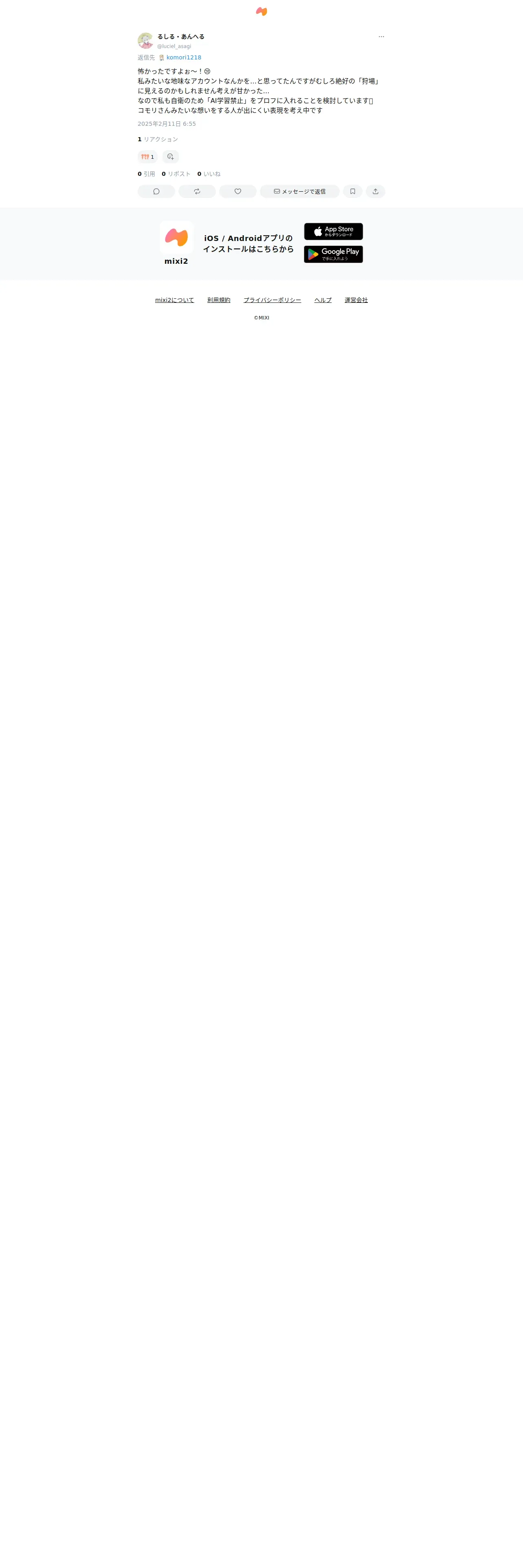 https://mixi.social:443/@luciel_asagi/posts/1d8baa16-3eb2-4786-9943-713b389d1abe