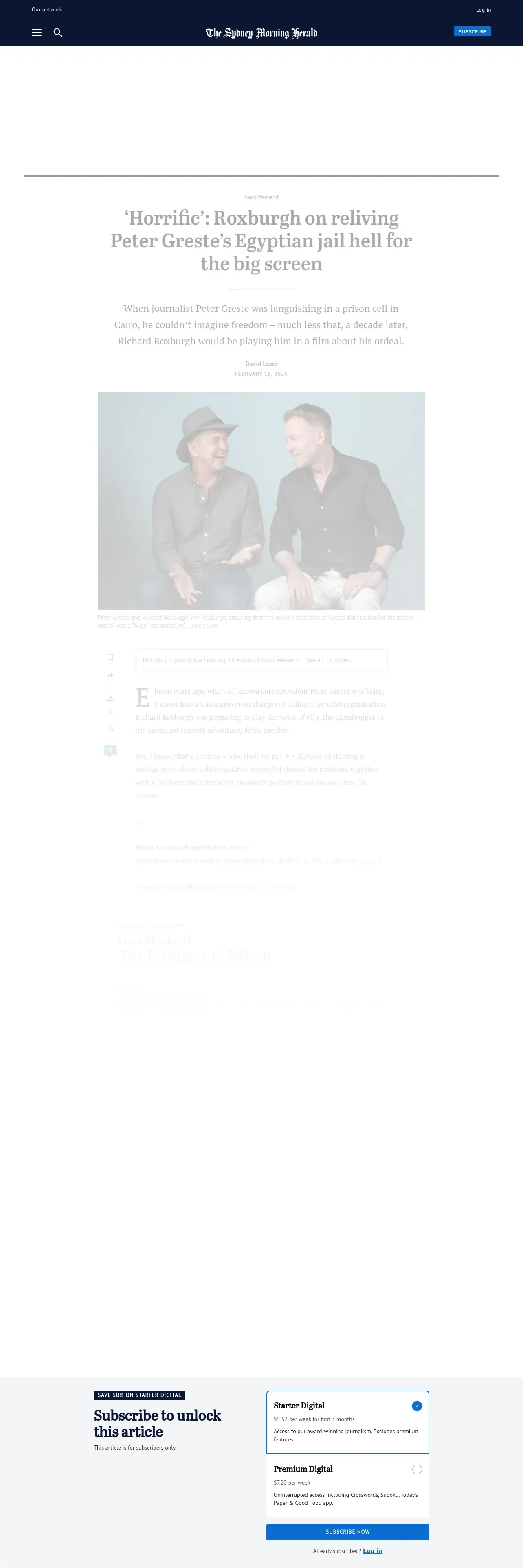 https://www.smh.com.au:443/national/horrific-roxburgh-on-reliving-peter-greste-s-egyptian-jail-hell-for-the-big-screen-20241106-p5koa7.html