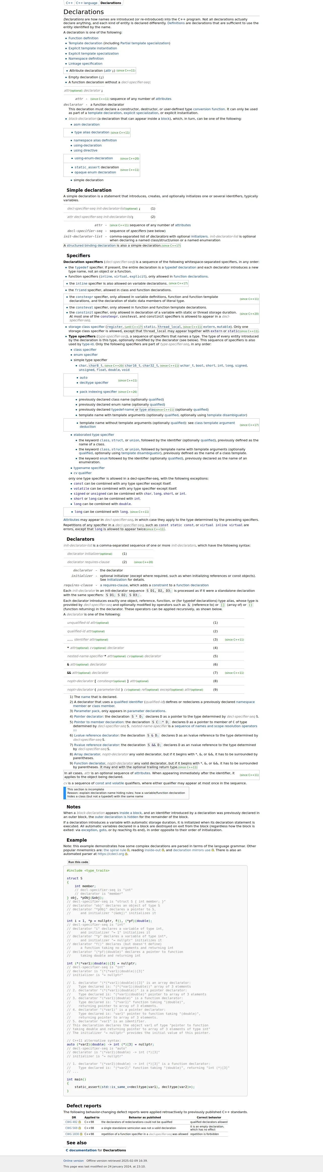 http://cppreference.michaelagarkov.ru/en/cpp/language/declarations.html
