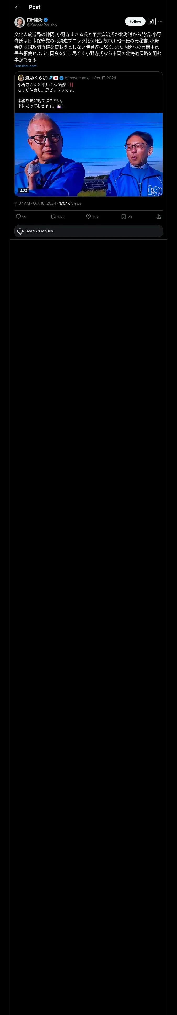 取得元URL: https://x.com:443/KadotaRyusho/status/1847097099621707955/retweets
