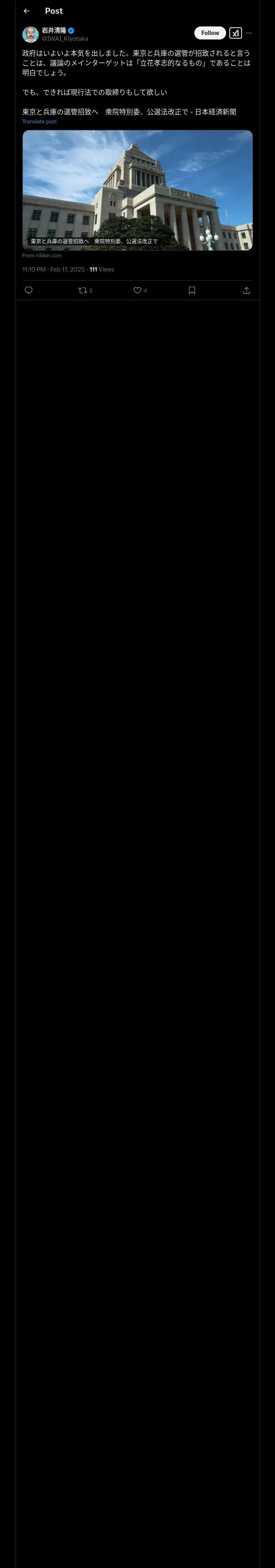 https://x.com:443/IWAI_Kiyotaka/status/1891490347295047870