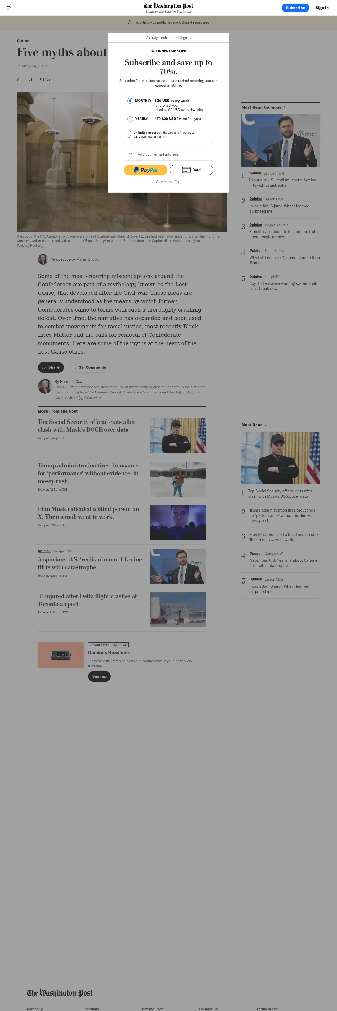 取得元URL: https://www.washingtonpost.com:443/outlook/five-myths/five-myths-about-the-lost-cause/2021/01/14/78853464-55f9-11eb-a08b-f1381ef3d207_story.html