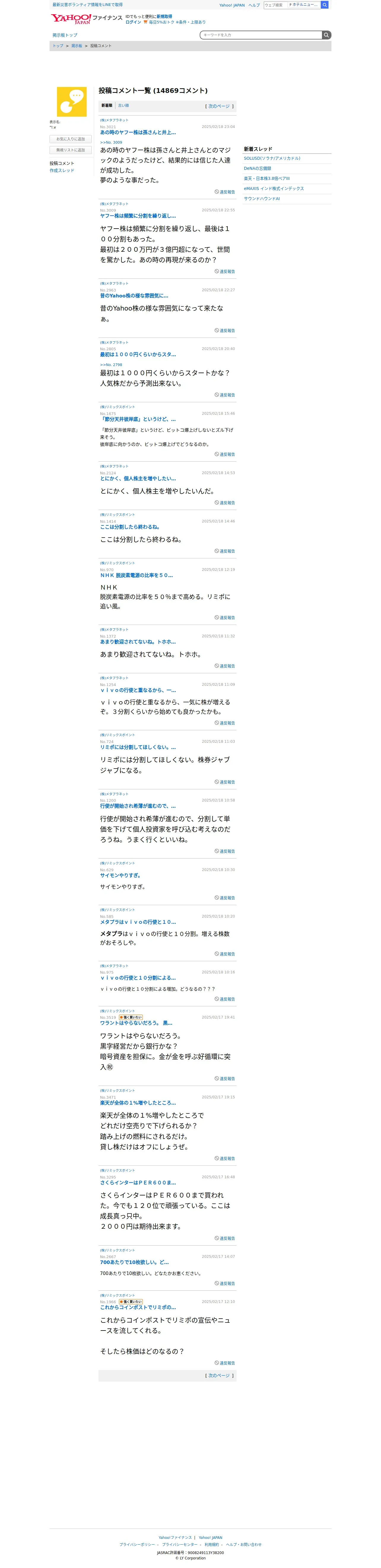 取得元URL: https://finance.yahoo.co.jp:443/cm/personal/history/comment?user=27dcae57bc3e6b1fd5b6fff56d480d410fe1ce7c8bdeee385df0fcc698dfdc15