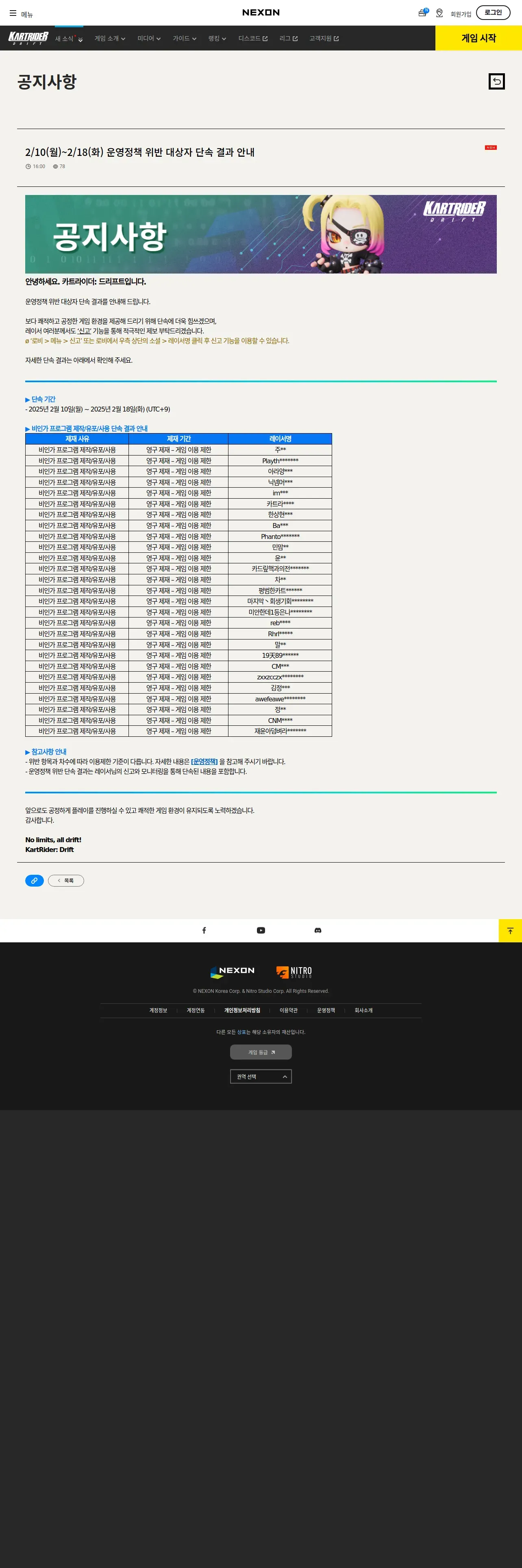 https://kartdrift.nexon.com:443/kartdrift/ko/news/announcement/view?threadId=2734164