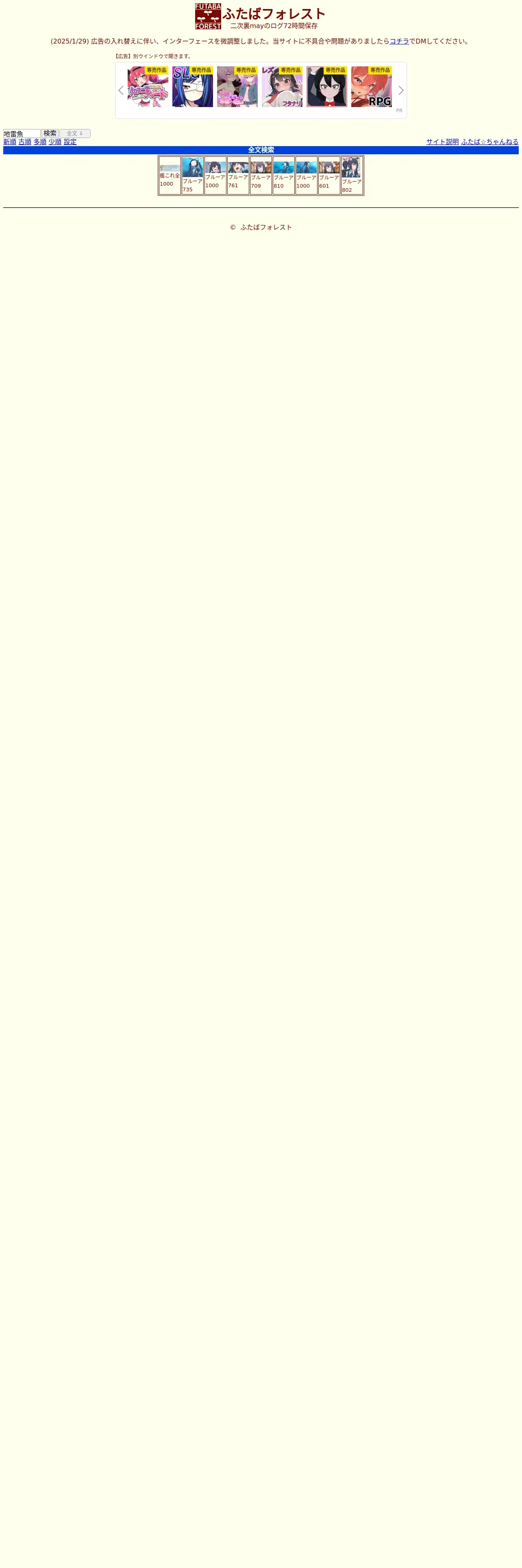https://futabaforest.net:443/index.htm?sm=2&words=%E5%9C%B0%E9%9B%B7%E9%AD%9A