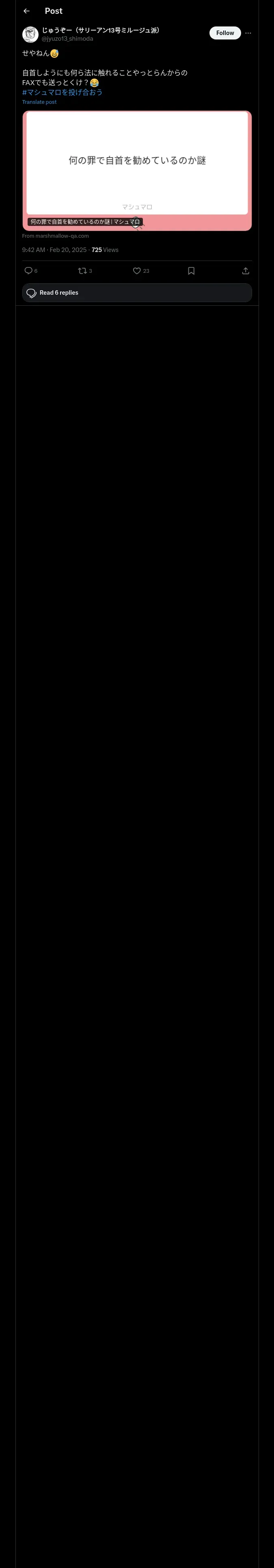 https://x.com:443/jyuzo13_shimoda/status/1892374314961211451?t=AdqHi0BL1w48T4nm20ZHCQ&s=19