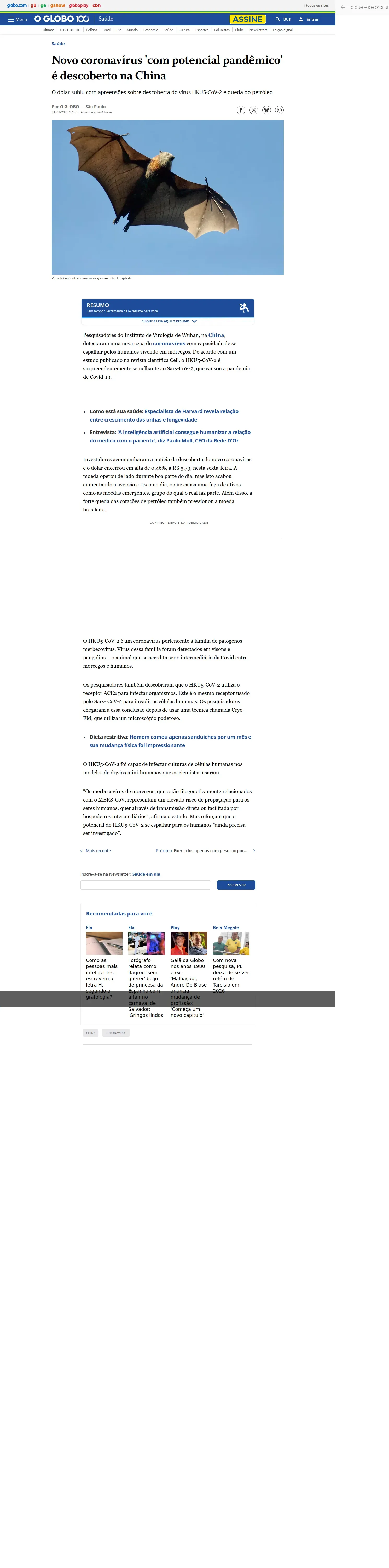 https://oglobo.globo.com:443/saude/noticia/2025/02/21/novo-coronavirus-com-potencial-pandemico-e-descoberto-na-china.ghtml