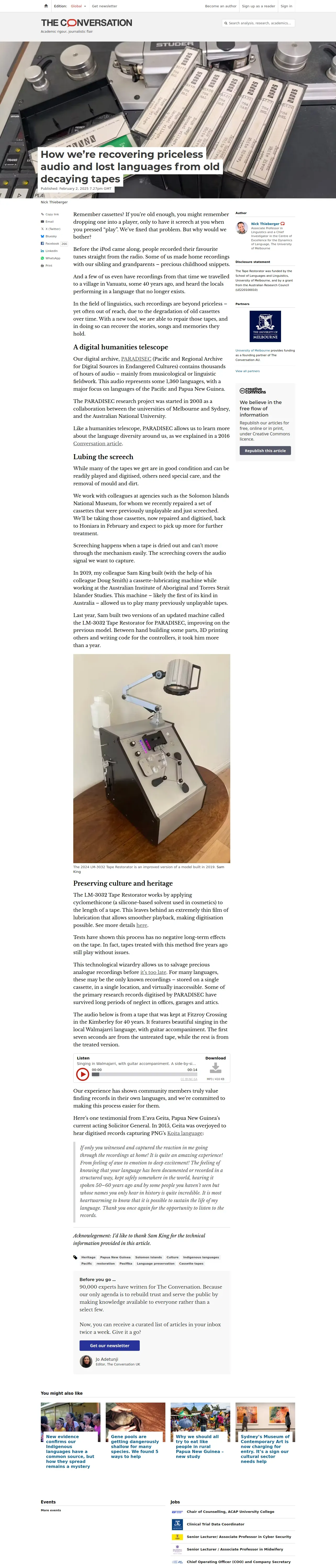 https://theconversation.com:443/how-were-recovering-priceless-audio-and-lost-languages-from-old-decaying-tapes-248116