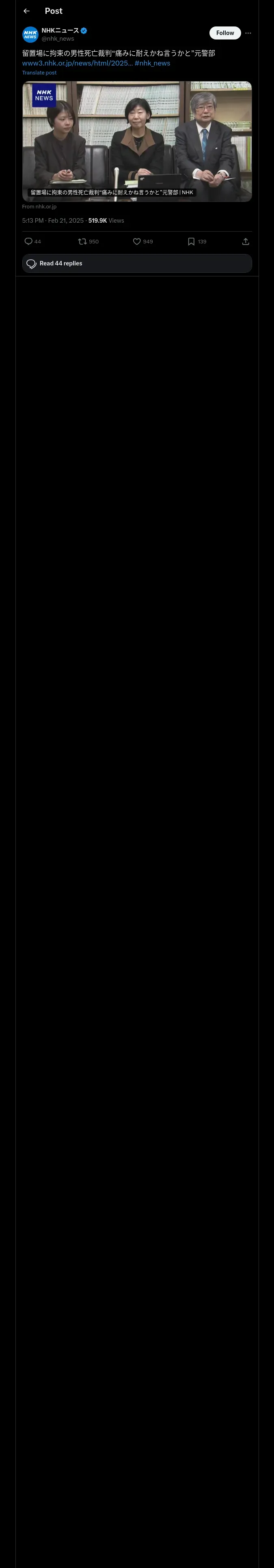 取得元URL: https://x.com:443/nhk_news/status/1892850006270570840