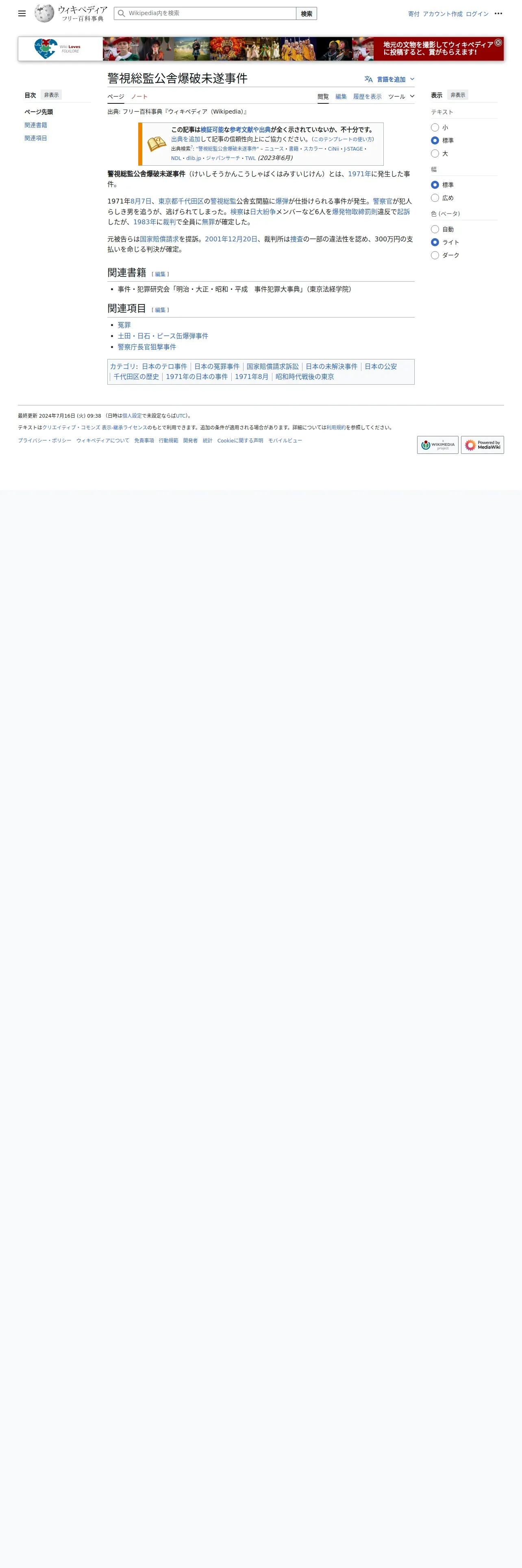 https://ja.wikipedia.org:443/wiki/%E8%AD%A6%E8%A6%96%E7%B7%8F%E7%9B%A3%E5%85%AC%E8%88%8E%E7%88%86%E7%A0%B4%E6%9C%AA%E9%81%82%E4%BA%8B%E4%BB%B6