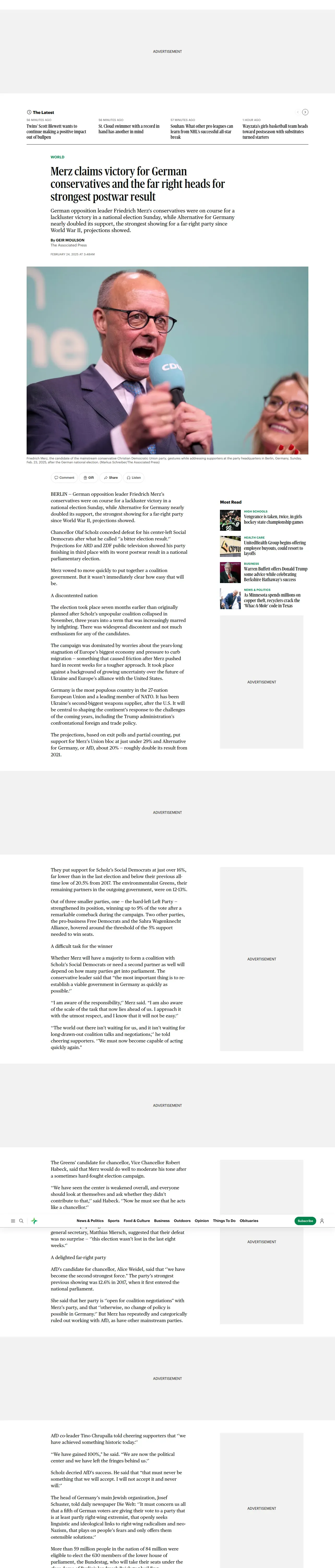 https://www.startribune.com:443/merz-claims-victory-for-german-conservatives-and-the-far-right-heads-for-strongest-postwar-result/601227235
