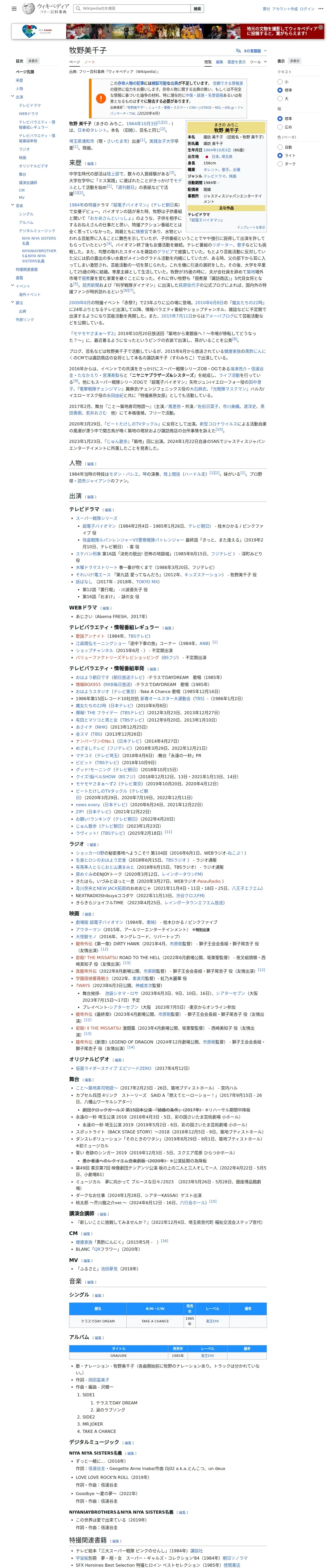 https://ja.wikipedia.org:443/wiki/%E7%89%A7%E9%87%8E%E7%BE%8E%E5%8D%83%E5%AD%90