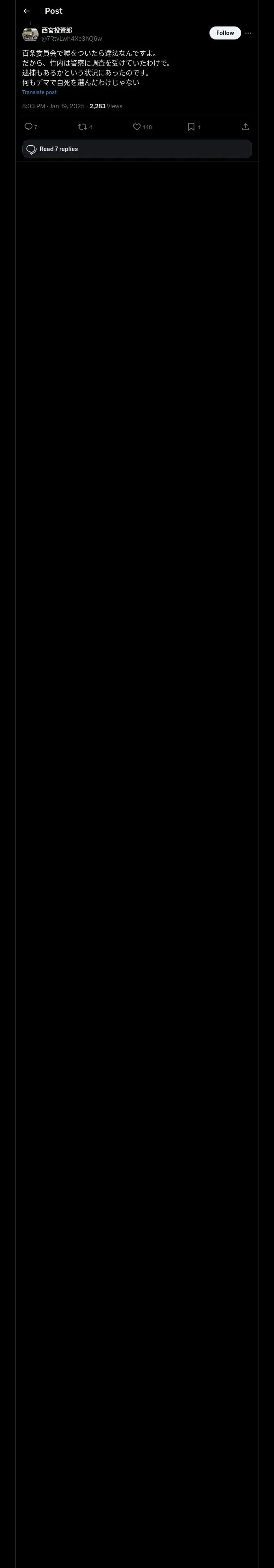 取得元URL: https://x.com:443/7RtvLwh4Xe3hQ6w/status/1880934041349931448