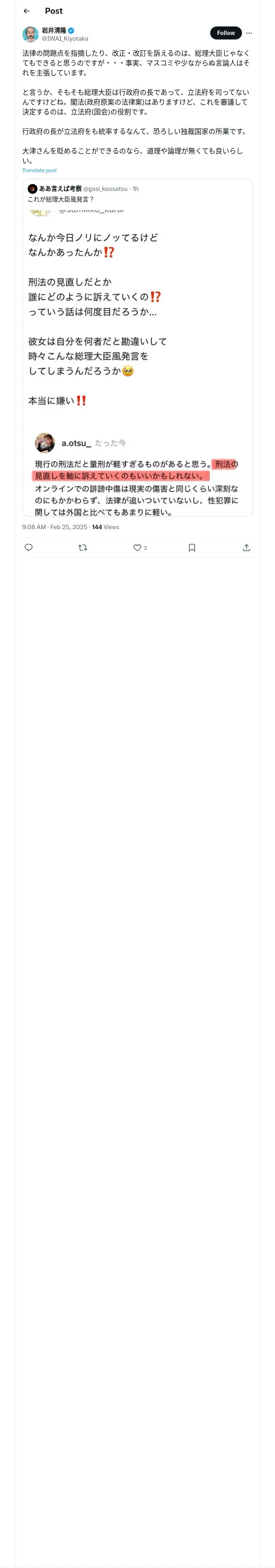 https://x.com:443/IWAI_Kiyotaka/status/1894177712463647169