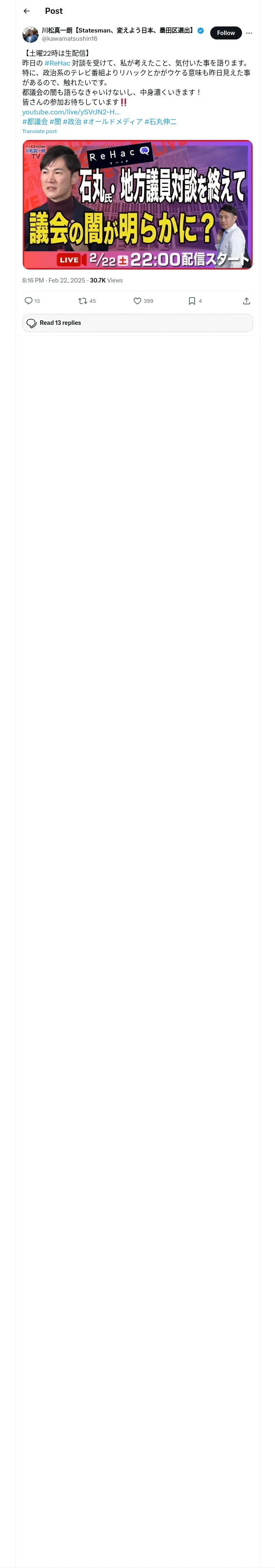 https://x.com:443/kawamatsushin16/status/1893258491634295095
