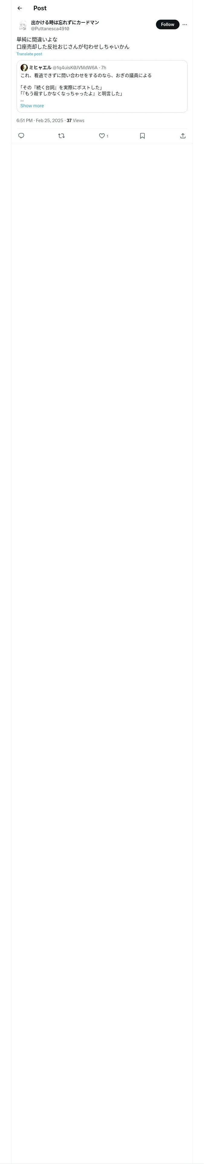 取得元URL: https://x.com:443/Puttanesca4910/status/1894324328705265935?t=zmaoFC-aW_g-g4SPAA3LaA&s=19