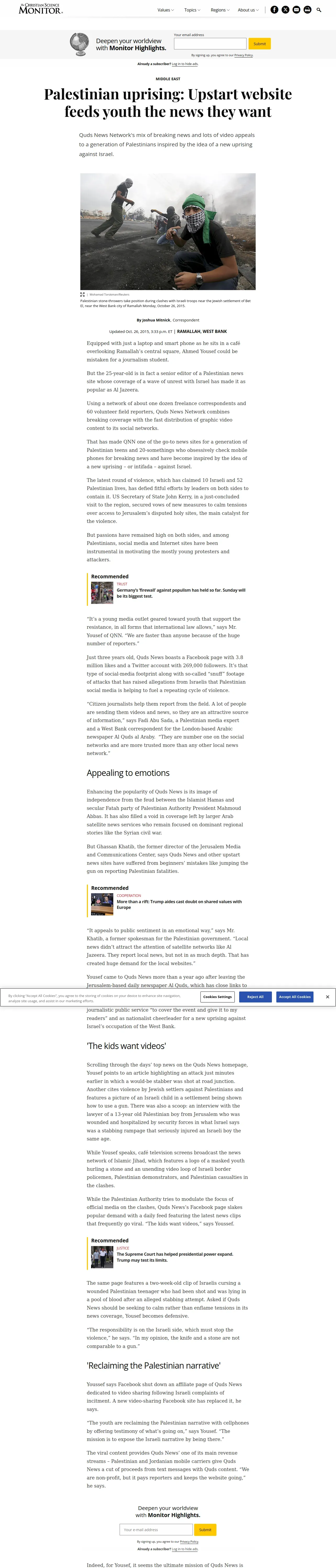 https://www.csmonitor.com:443/World/Middle-East/2015/1026/Palestinian-uprising-Upstart-website-feeds-youth-the-news-they-want