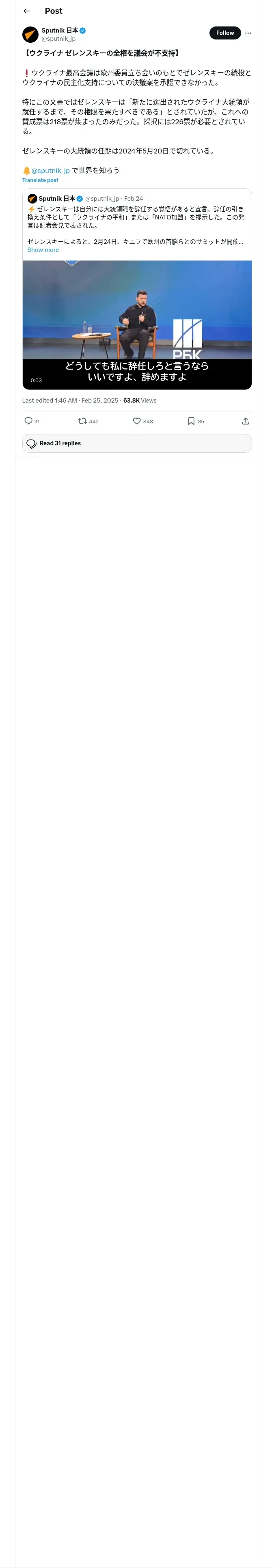 取得元URL: https://x.com:443/sputnik_jp/status/1894066395614154904
