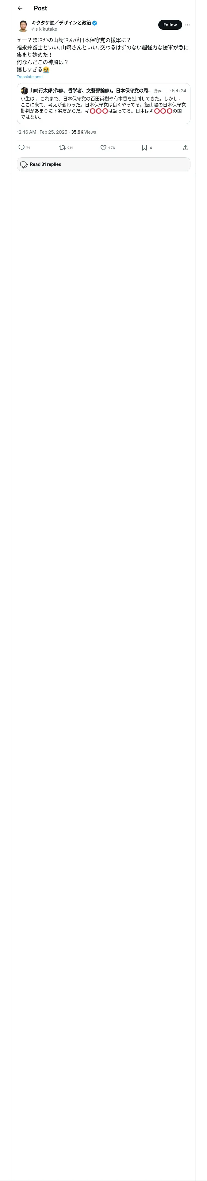 取得元URL: https://x.com:443/s_kikutake/status/1894051400662818840