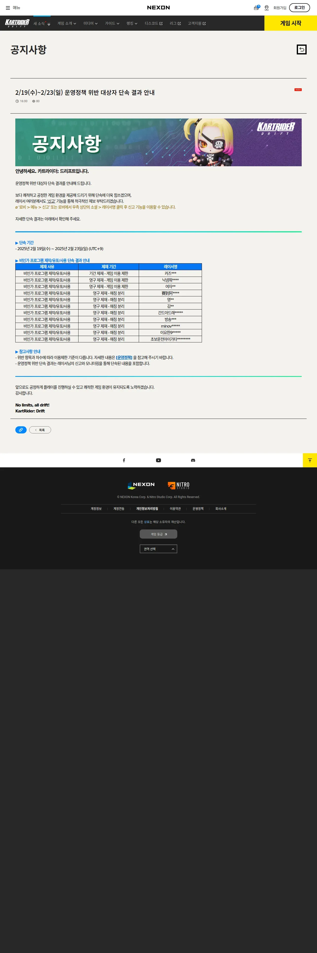 https://kartdrift.nexon.com:443/kartdrift/ko/news/announcement/view?threadId=2736983